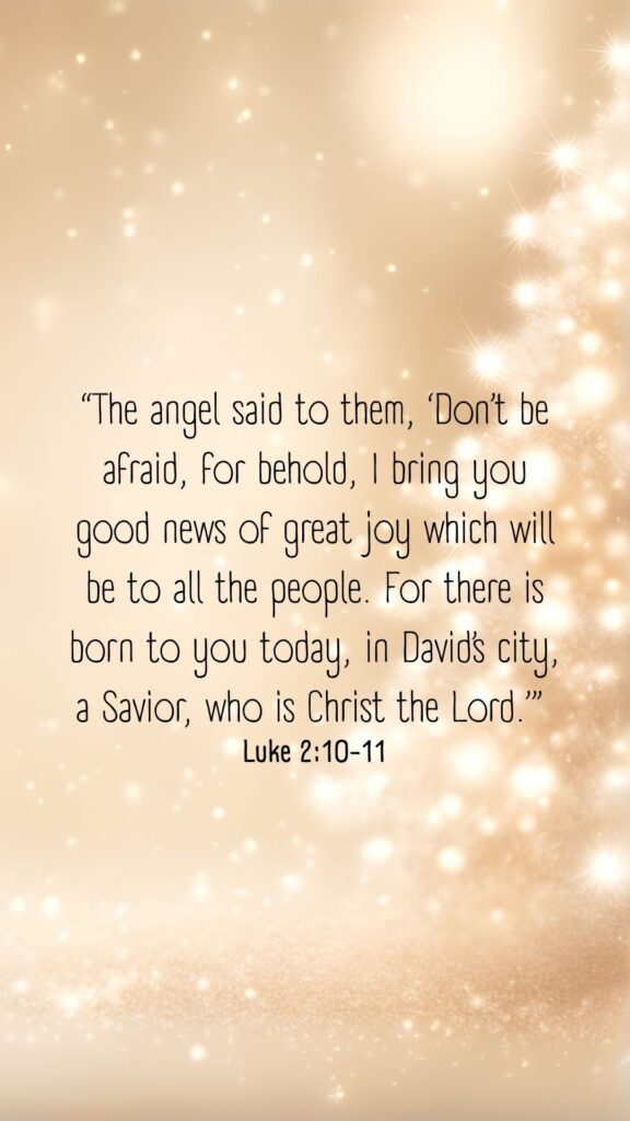 “The angel said to them, ‘Don’t be afraid, for behold, I bring you good news of great joy which will be to all the people. For there is born to you today, in David’s city, a Savior, who is Christ the Lord.’”