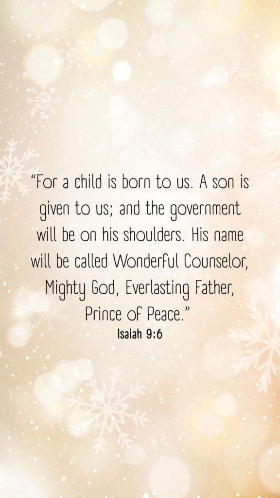 “For a child is born to us. A son is given to us; and the government will be on his shoulders. His name will be called Wonderful Counselor, Mighty God, Everlasting Father, Prince of Peace.”