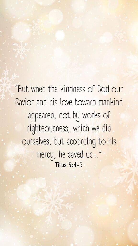 “But when the kindness of God our Savior and his love toward mankind appeared, not by works of righteousness, which we did ourselves, but according to his mercy, he saved us…”