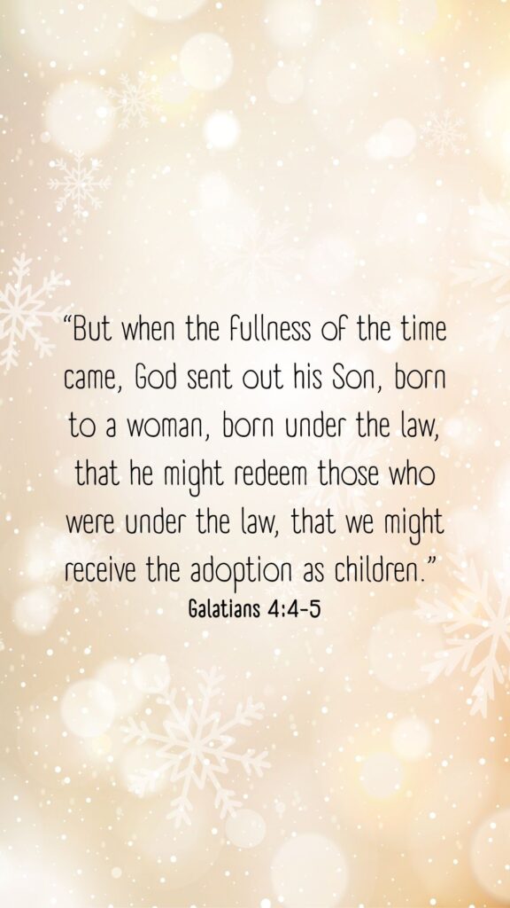 “But when the fullness of the time came, God sent out his Son, born to a woman, born under the law, that he might redeem those who were under the law, that we might receive the adoption as children.”