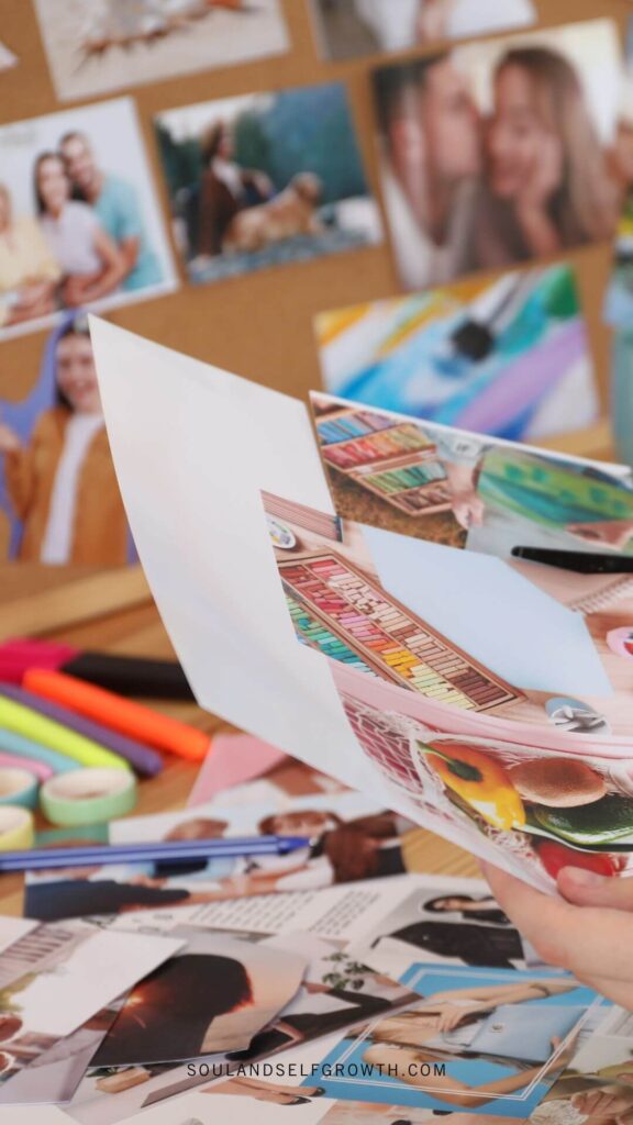 It can be tempting to fill your board with glossy, aspirational images that look good together. Resist that. Every image and word on a healing vision board should mean something specific to you — something that actually stirs your heart when you look at it.
