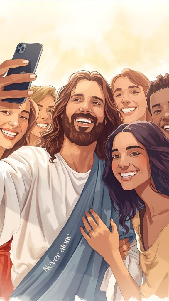 These wallpapers show Jesus walking beside a young woman, smiling, listening, or simply being there.