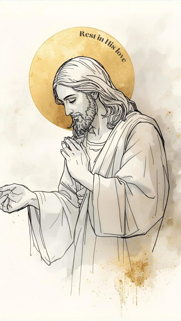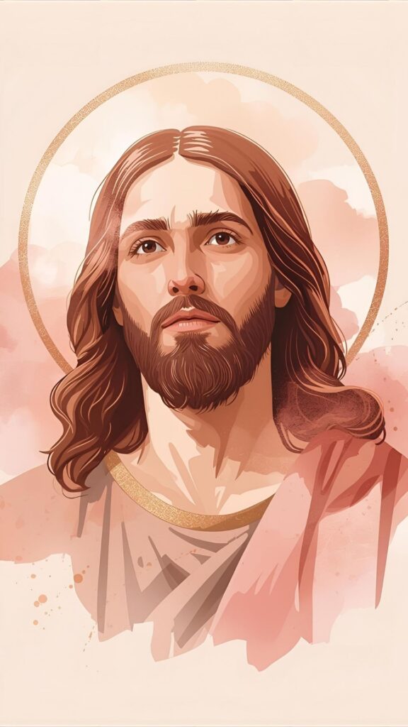 Each portrait of Jesus has a calm, soft glow — usually in blue or rose gold tones.